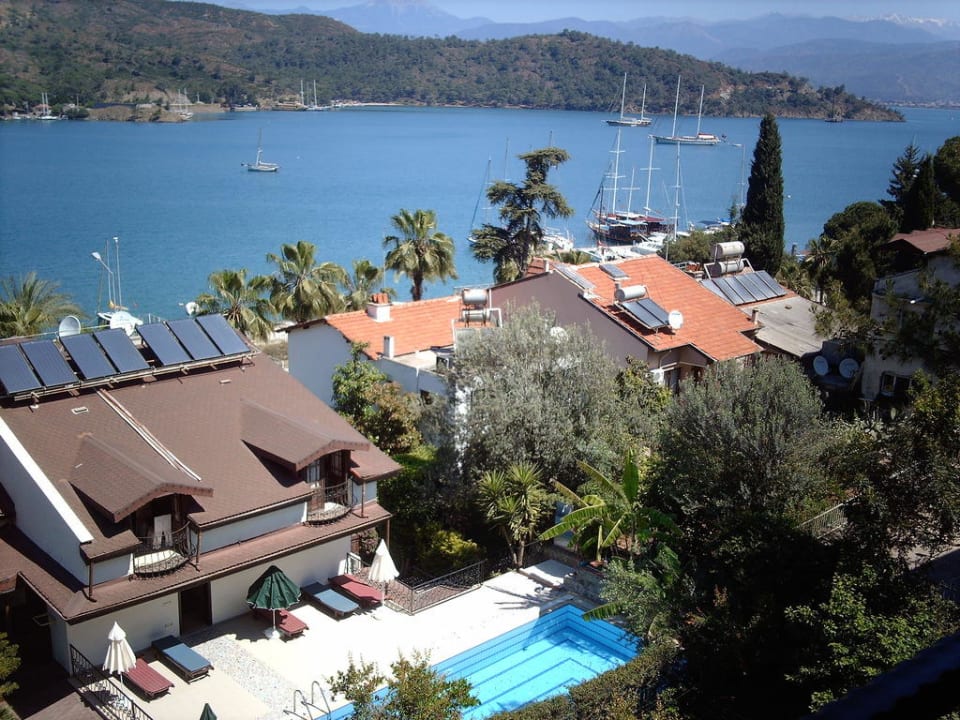 Ausblick über die Anlage mit Pool zum Meer.