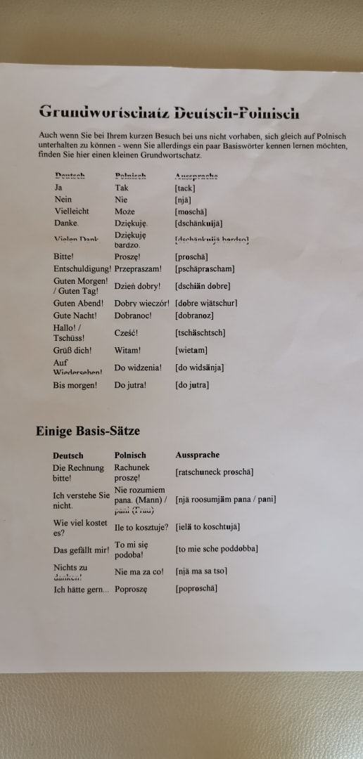 Auf dem Zimmer gibt es einen kleinen Sprachkurszettel ;)