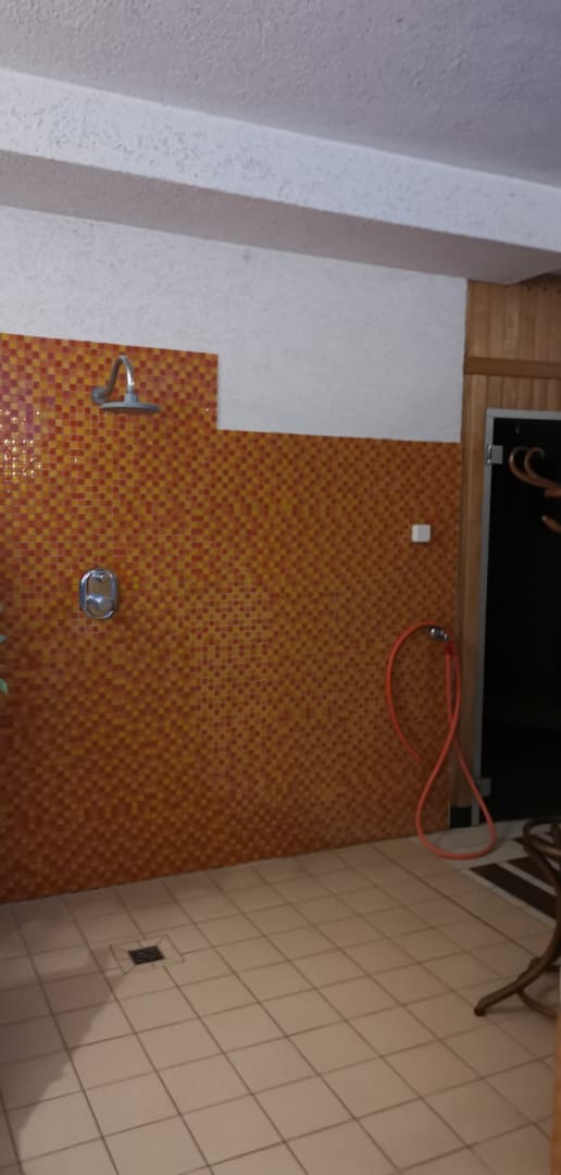 Dusche vor den Saunen, am Pool vorbei.