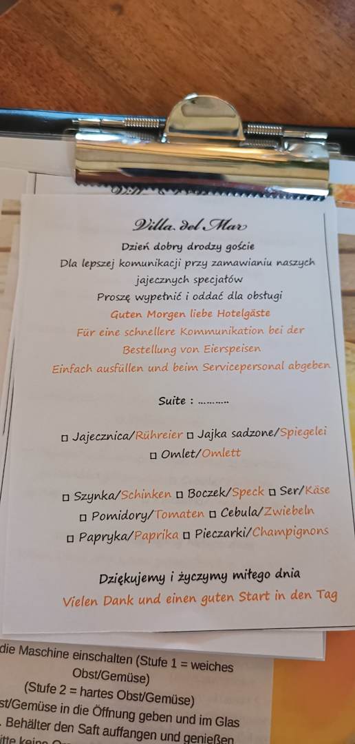 Die in der Bewertung erwähnten Zettel beim Frühstück .