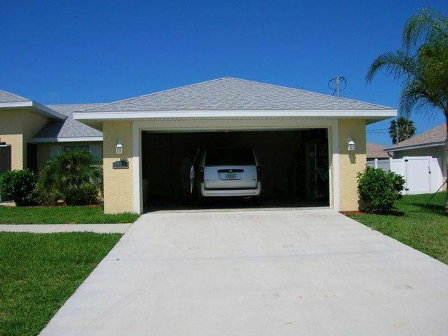 Blick von der Straße auf die Garage