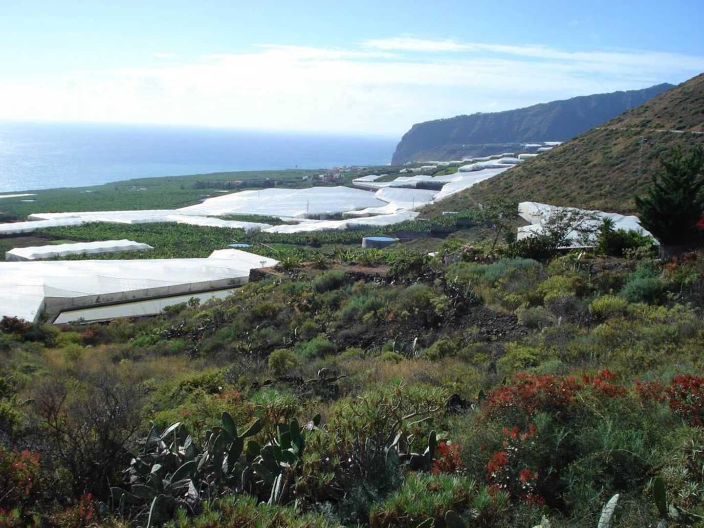 Blick aufs Meer mit Bananenplantagen