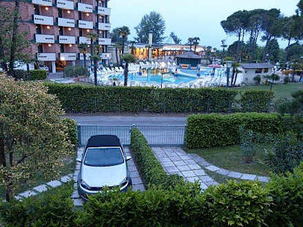 Ausblick auf die Poolanlage des Nachbarhotels