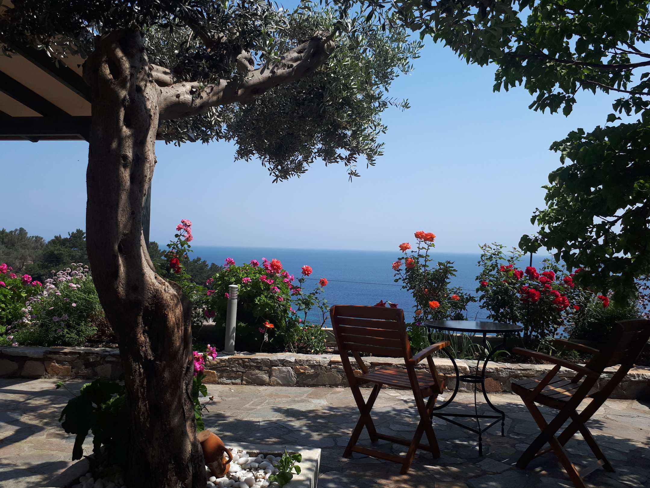 Blick von der Frühstücksterasse gen Meer