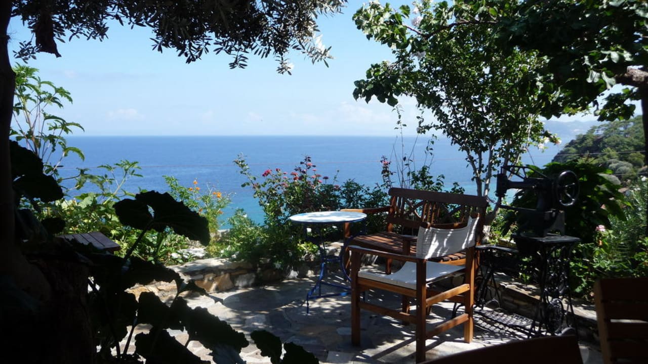 Dies zeigt die wunderschön gelegene Terrasse der Villa, wo auch gefrühstückt werden kann, aber natürlich auch sonst zu nutzen einläd.