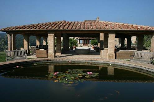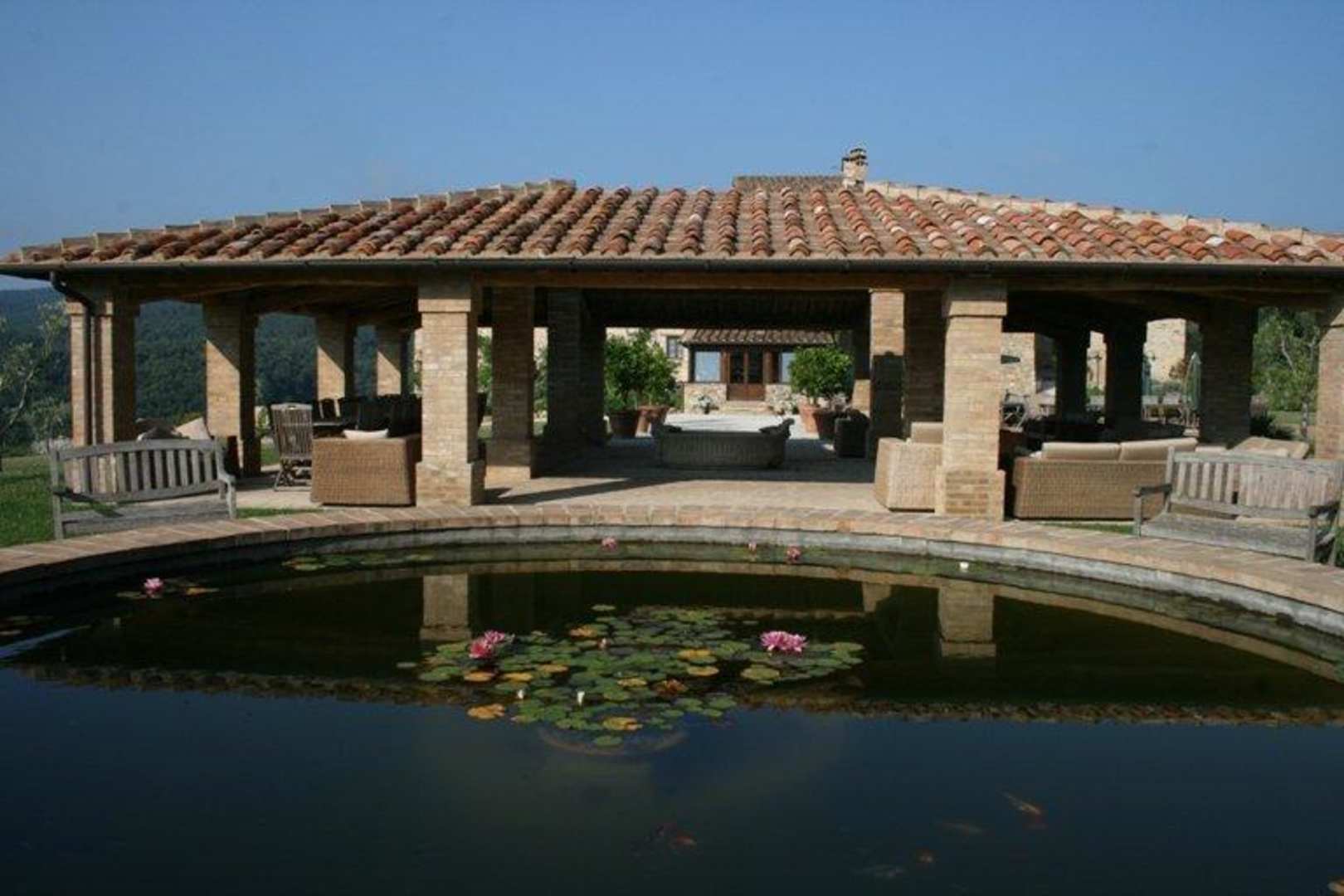 Domus con stagno artificiale con pesci colorati