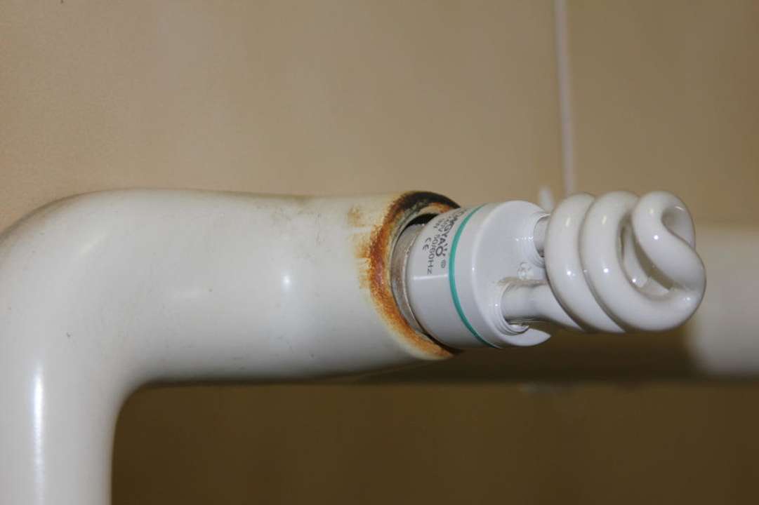 Im BadDies geschmackvolle, leicht angeschmorte Leuchmitte ist im Bad über dem Spiegel am Waschbecken zu finden.