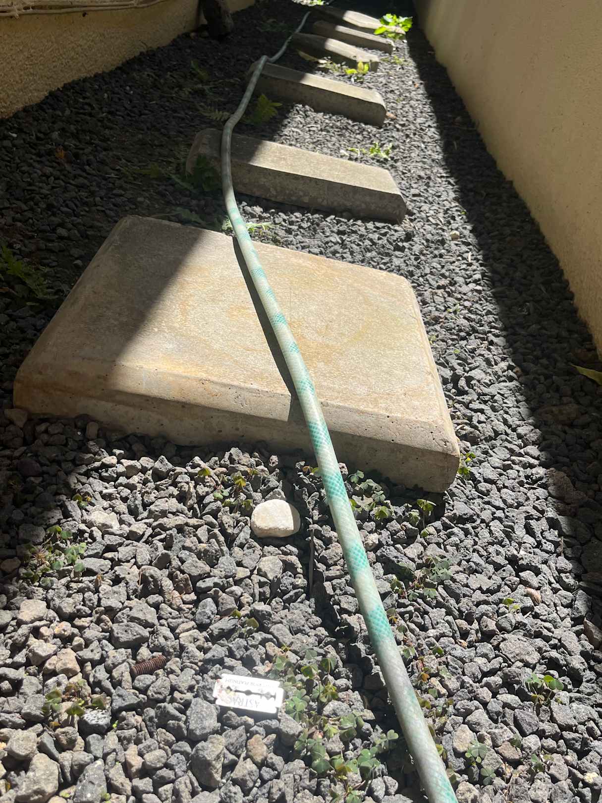 Rasierklinge und Müll im Aussenbereich. Lebensgefahr für Kinder