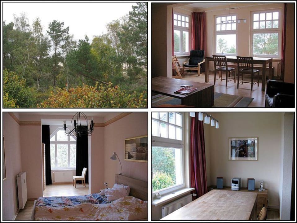 Links oben: Blick aus dem Fenster zur Seeseite.
