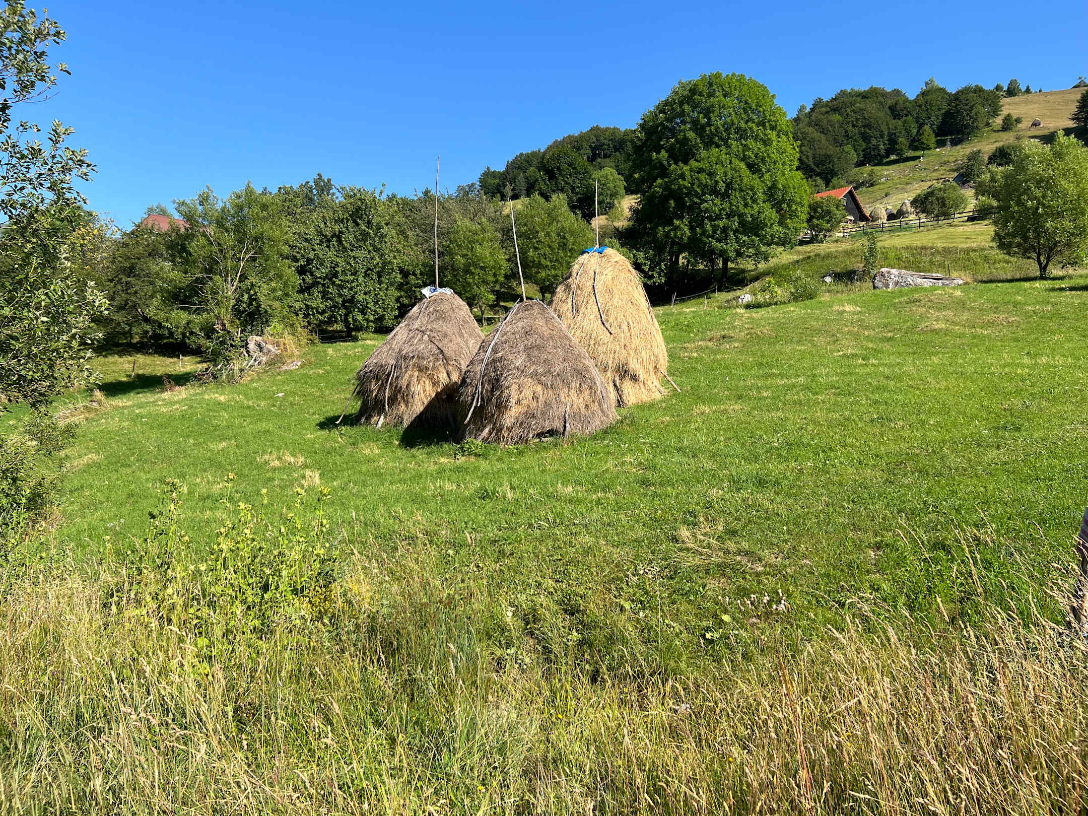 Hier wird das Heu noch mit der Sense gemäht, alles in Handarbeit und wie vor 100 Jahren...