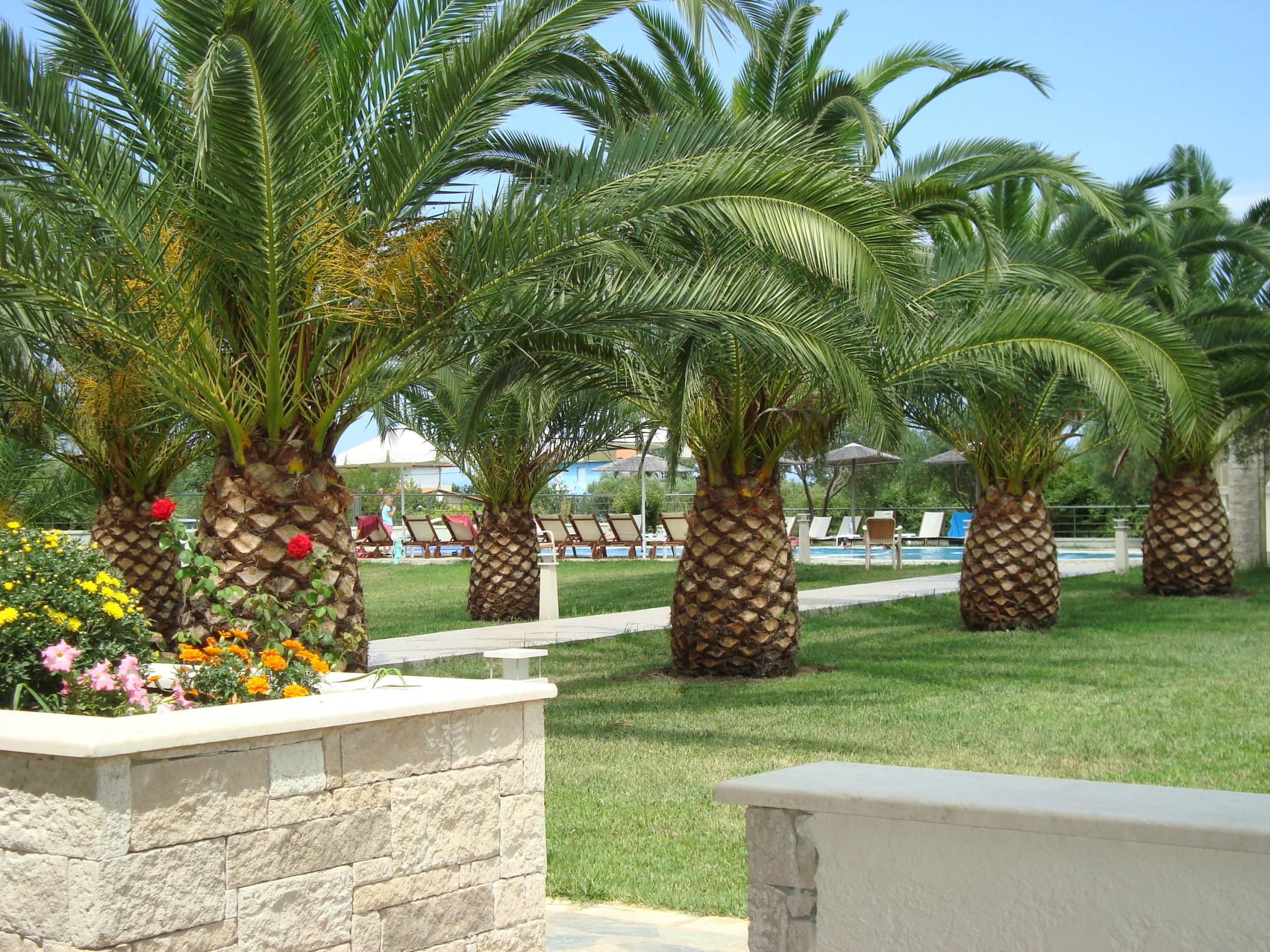 Blich von der Terrasse auf den Pool