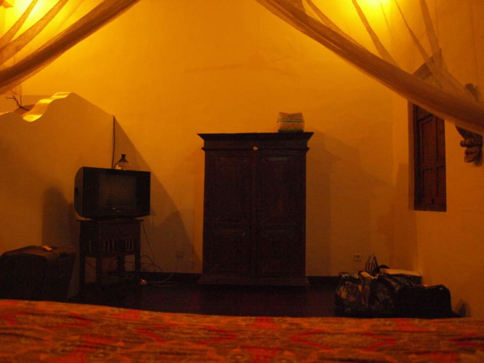 Blick vom Bett auf Fernseher/ kleiner Schrank