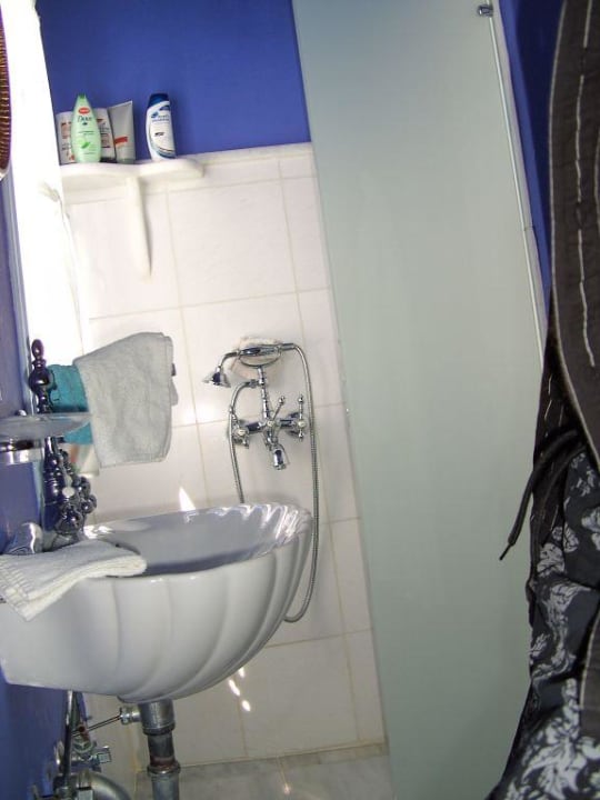 Die Dusche in dem kleinen Badezimmer