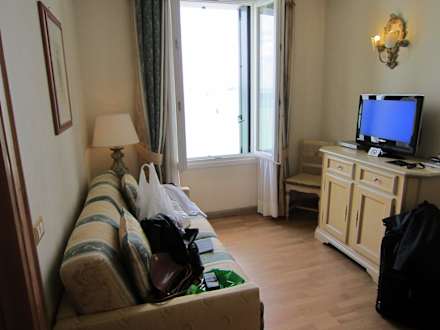 Suite Wohnzimmer mit TV und Blick auf den Markusplatz