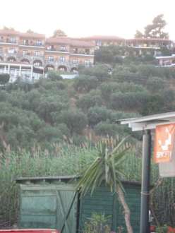 Villa Leoni vue de la plageLa villa est en haut à droite. Celle où l\'on voit la serviette jaune sur le balcon