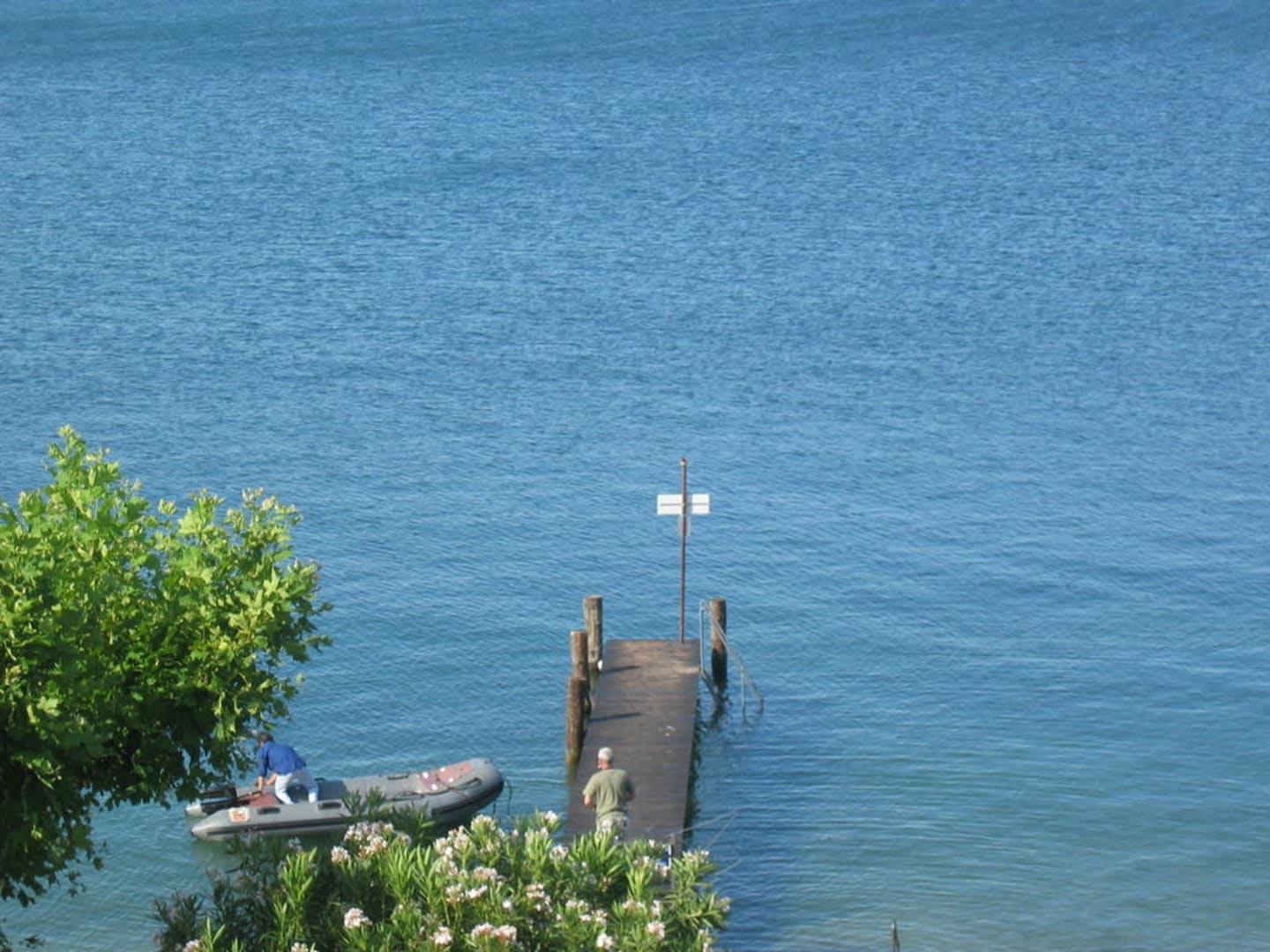 Blick von der Dachterrasse auf den Steg des HotelsEigener Steg vor dem Strandabschnitt des Hotels Villa Letizia