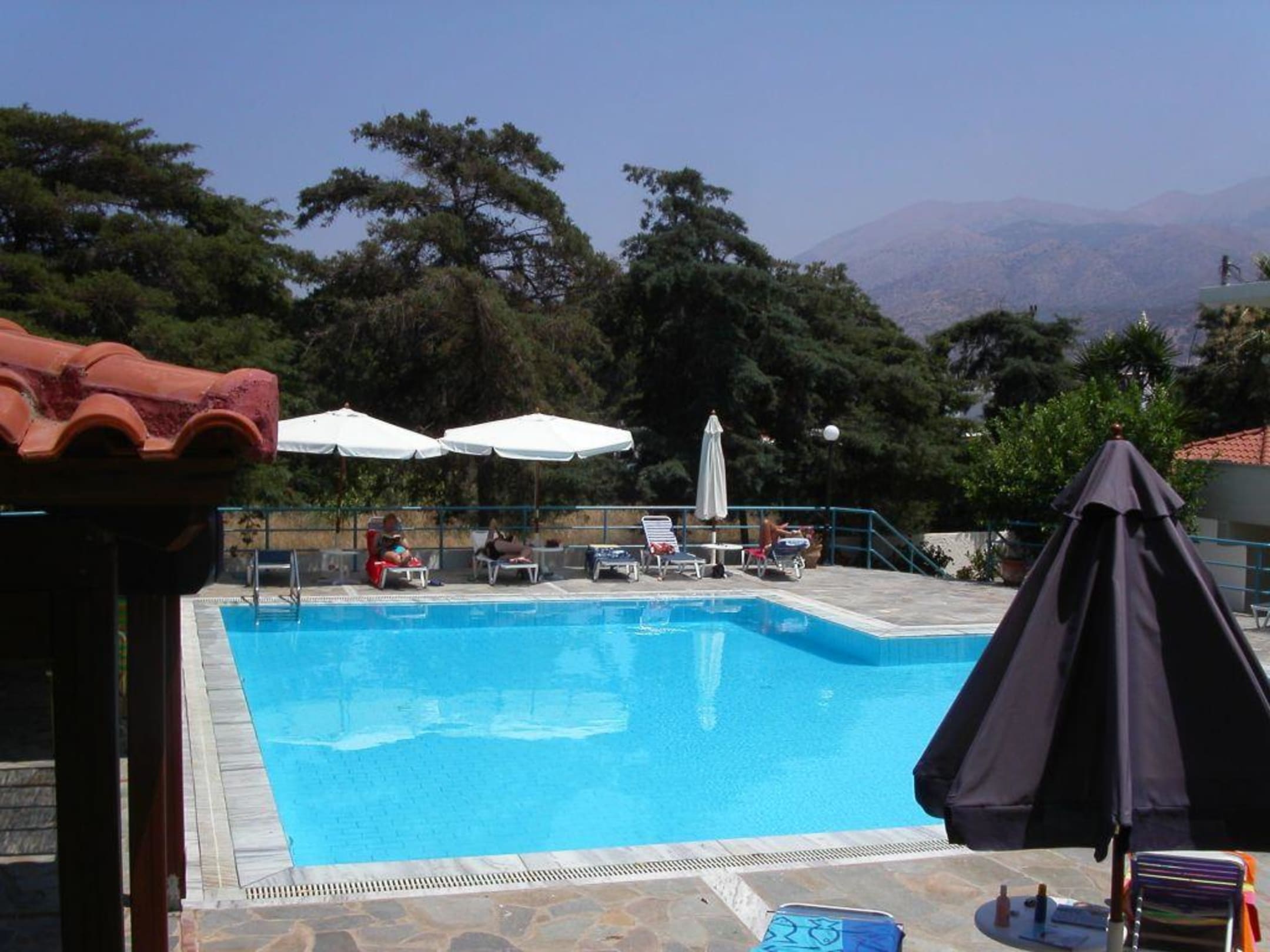 Links Poolbar mit kleiner Terrasse, rechts anschließend liegt das zweite Gebäude