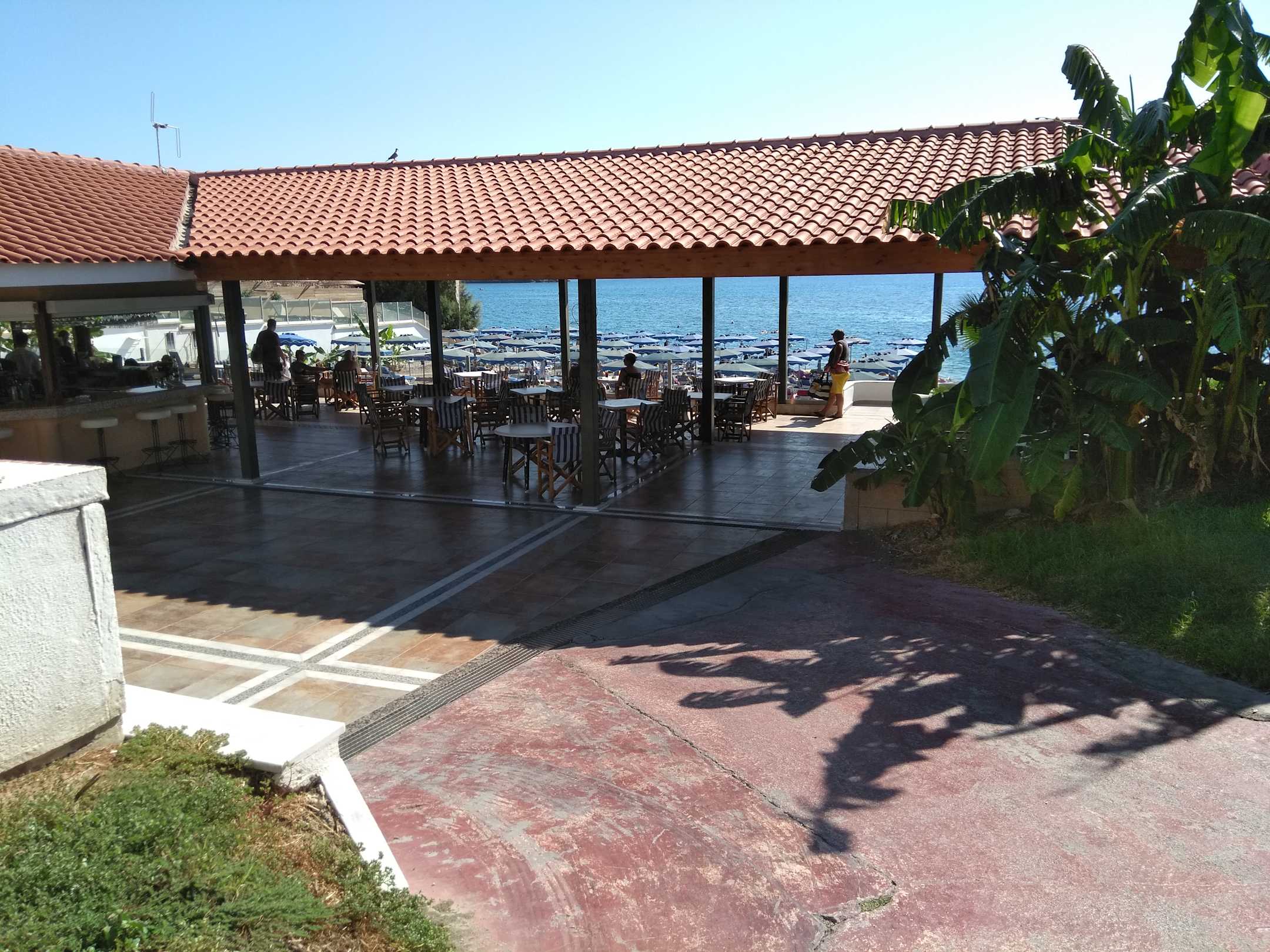 Der weitere Weg zum Strand durch die Strandbar des Alfa Beach Hotels.