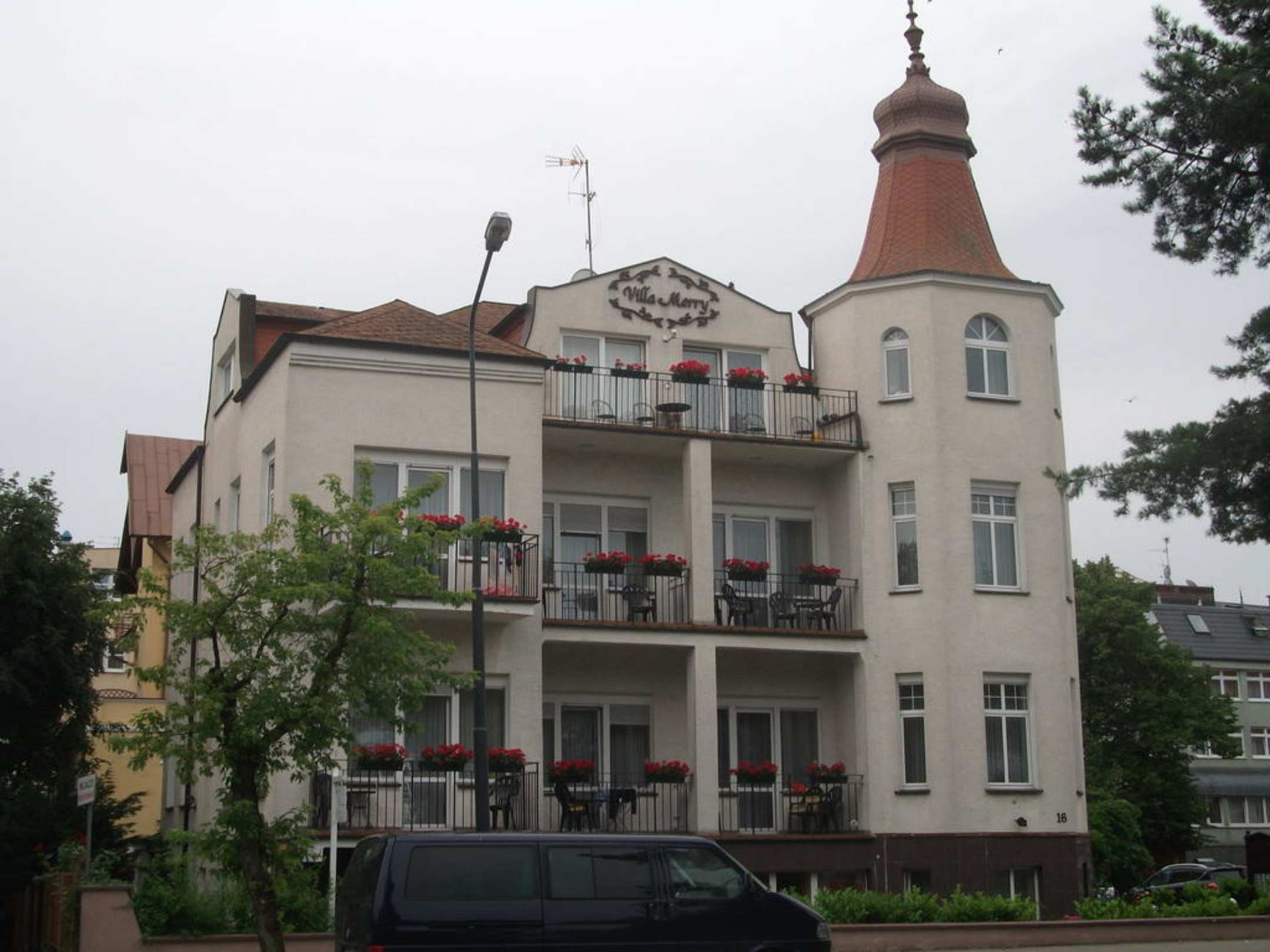 Blick von der Strandpromenade auf die Villa Merry