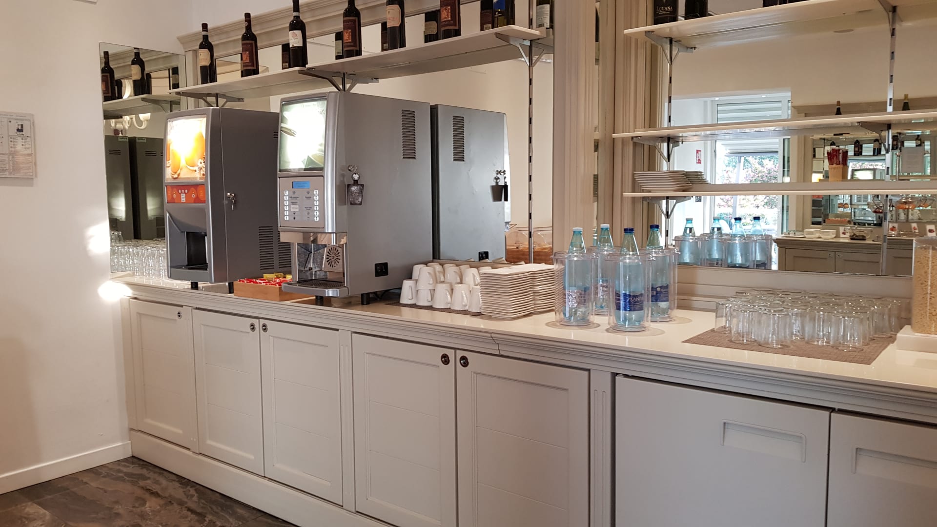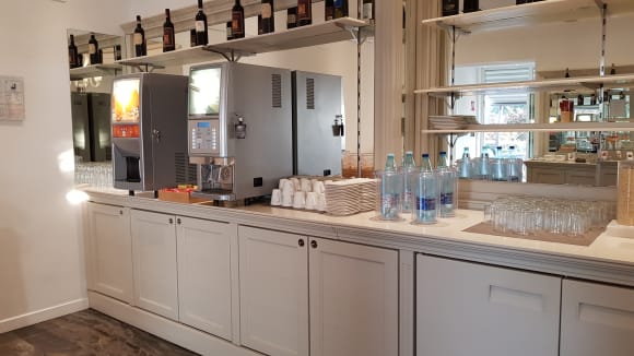 Der Kaffeeautomat bietet für jeden Geschmack ein Tässchen, daneben der Saftspender