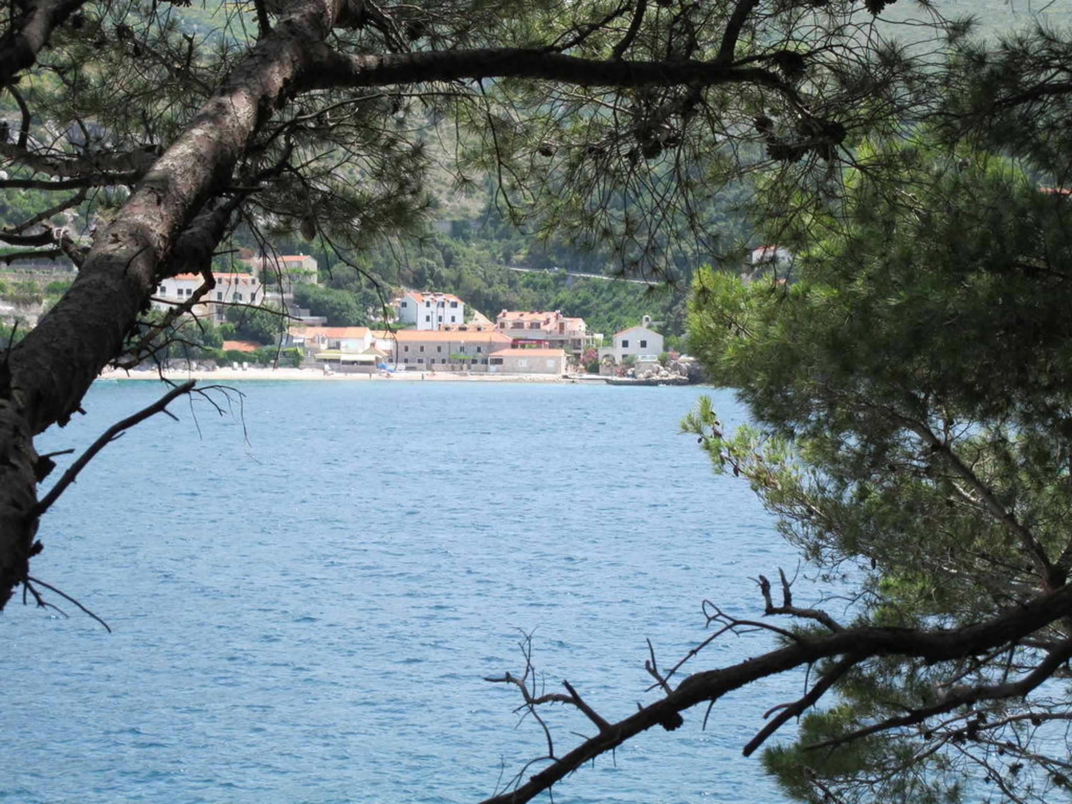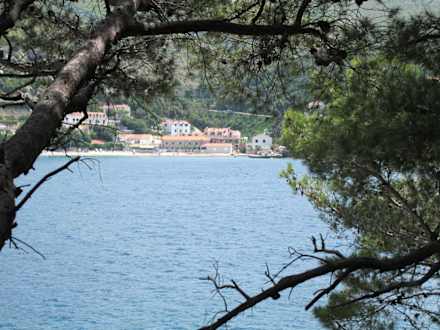 Der Dorfstrand von StikovicaDas ist der Strand von Stikovica von der gegenüberliegenden Seite der Zaton-Bucht aufgenommen.