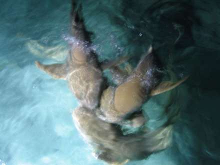 Riffhaie (Fütterung beim Thai)Jeden abend um 21.30h werden Riffhaie am Thailänder mit Thunfischstücken gefüttert. Ziemlich beeindruckt hat mich die "respektvolle Stille" der Touris. Alle haben geflüstert und waren sehr still (ohne dass wir dazu von den Hotelmitarbeitern angehalten worden wären).