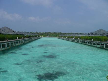Blick auf die Wasserbungalows
