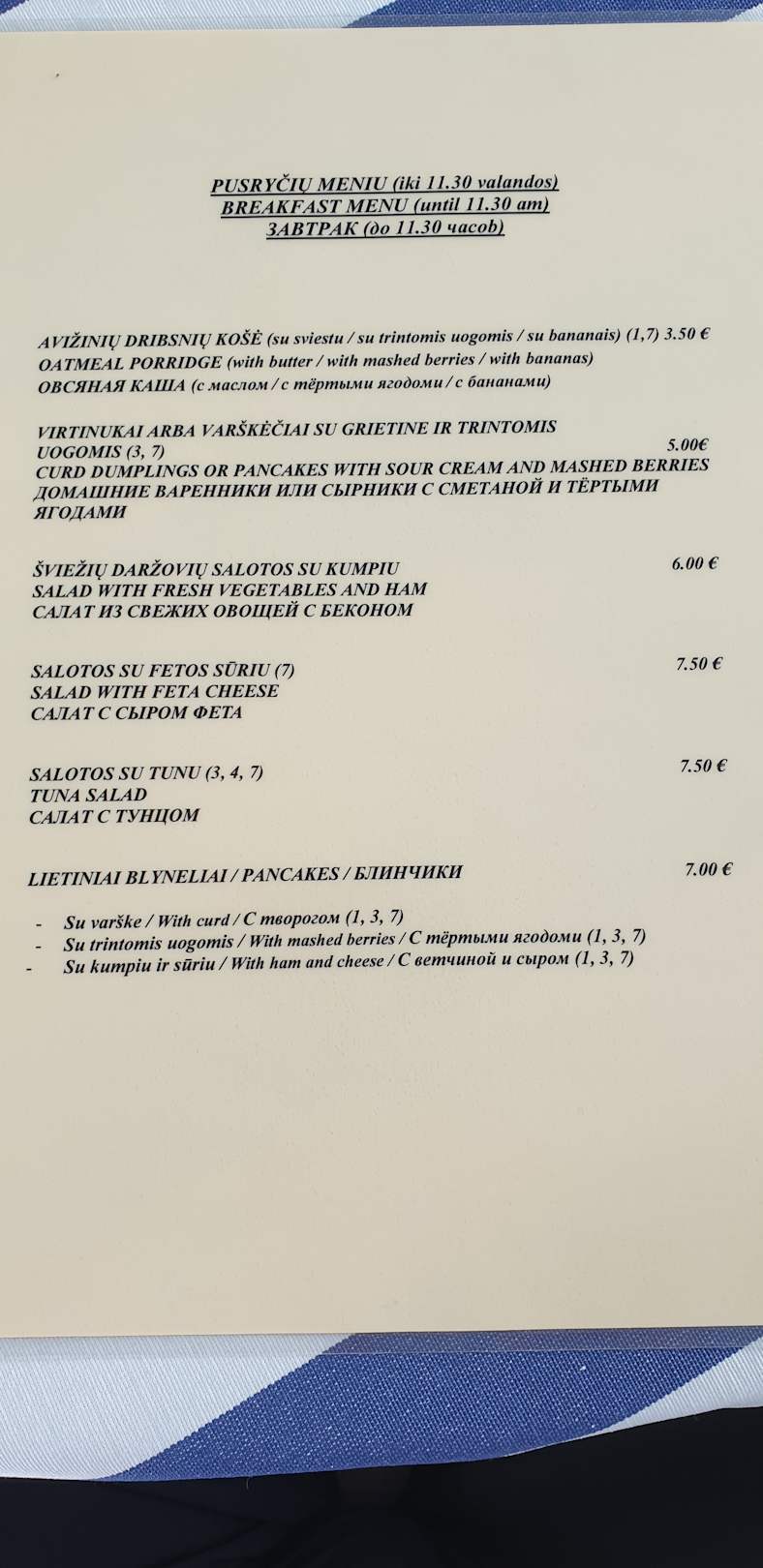 Frühstückskarte