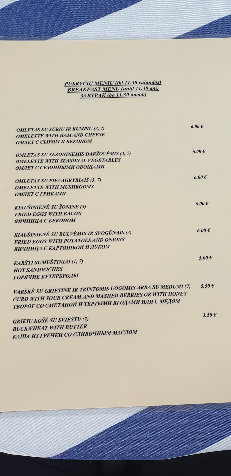 Frühstückskarte