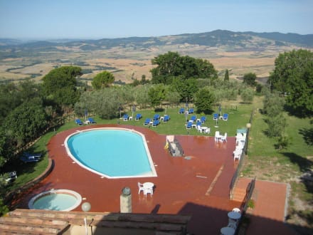 PoolanlageHier sieht man den Pool vom Zimmer aus und auch die schöne Liegewiese mit den Sonnenliegen, welche jeden Morgen gereinigt wurden.