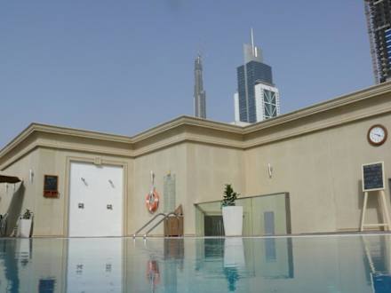 Blick vom Pool auf Burj Dubai