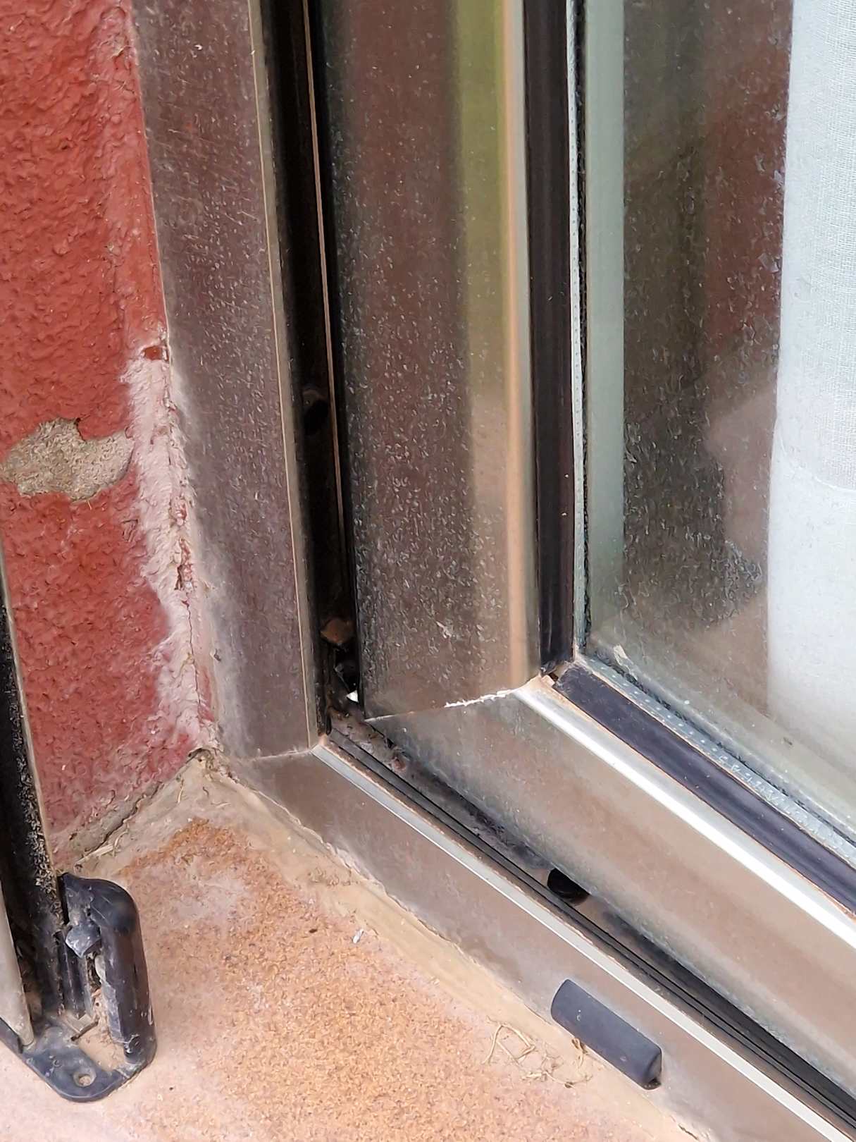 Kaputte Terrassentür im Schlafzimmer
