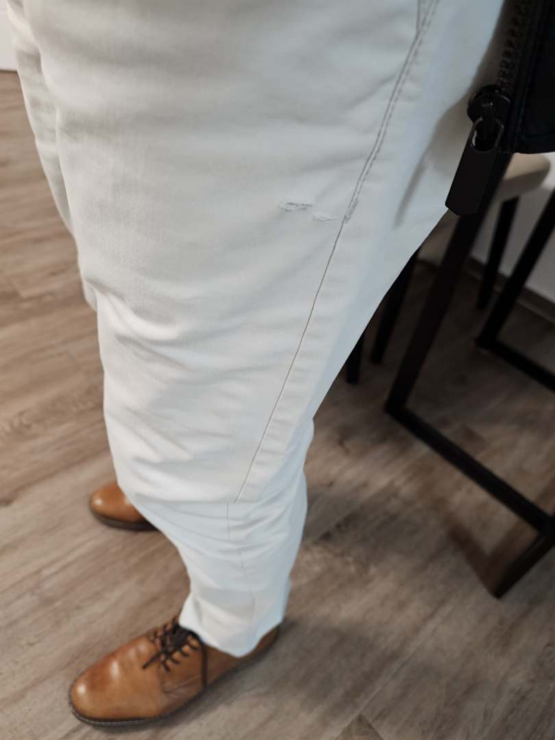 Zerrissene Hose durch Tisch.