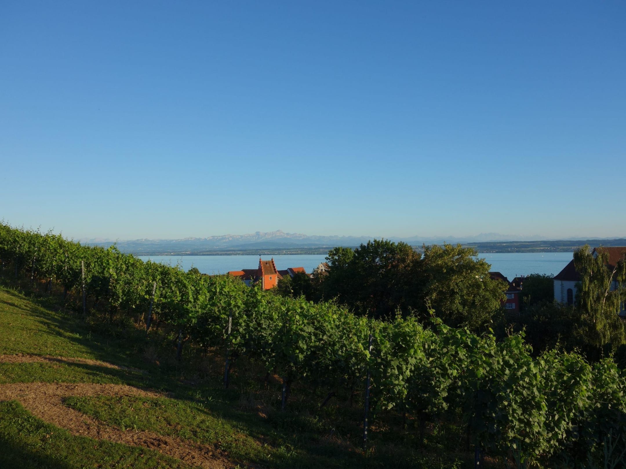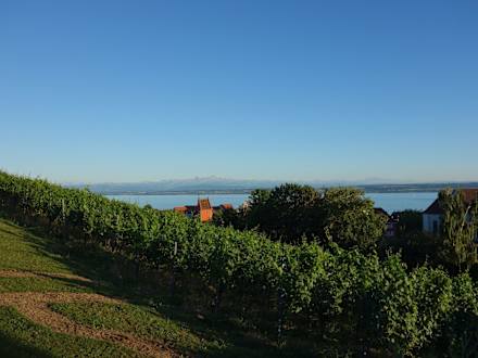 Blick auf die Weinberge und den Bodensee