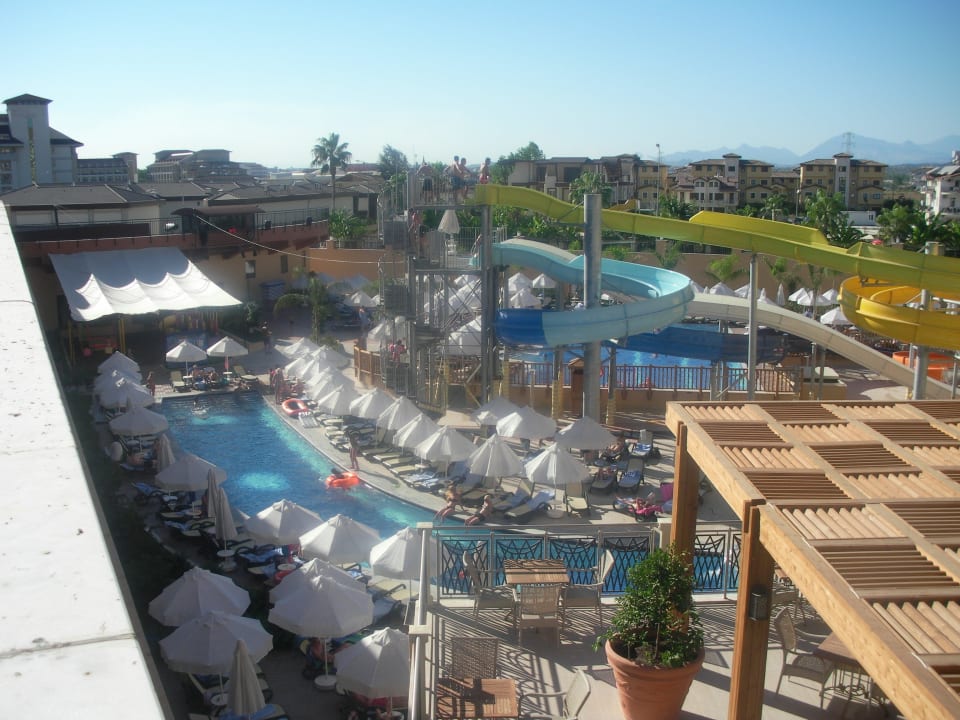 Blick von der Terrasse auf den Pool