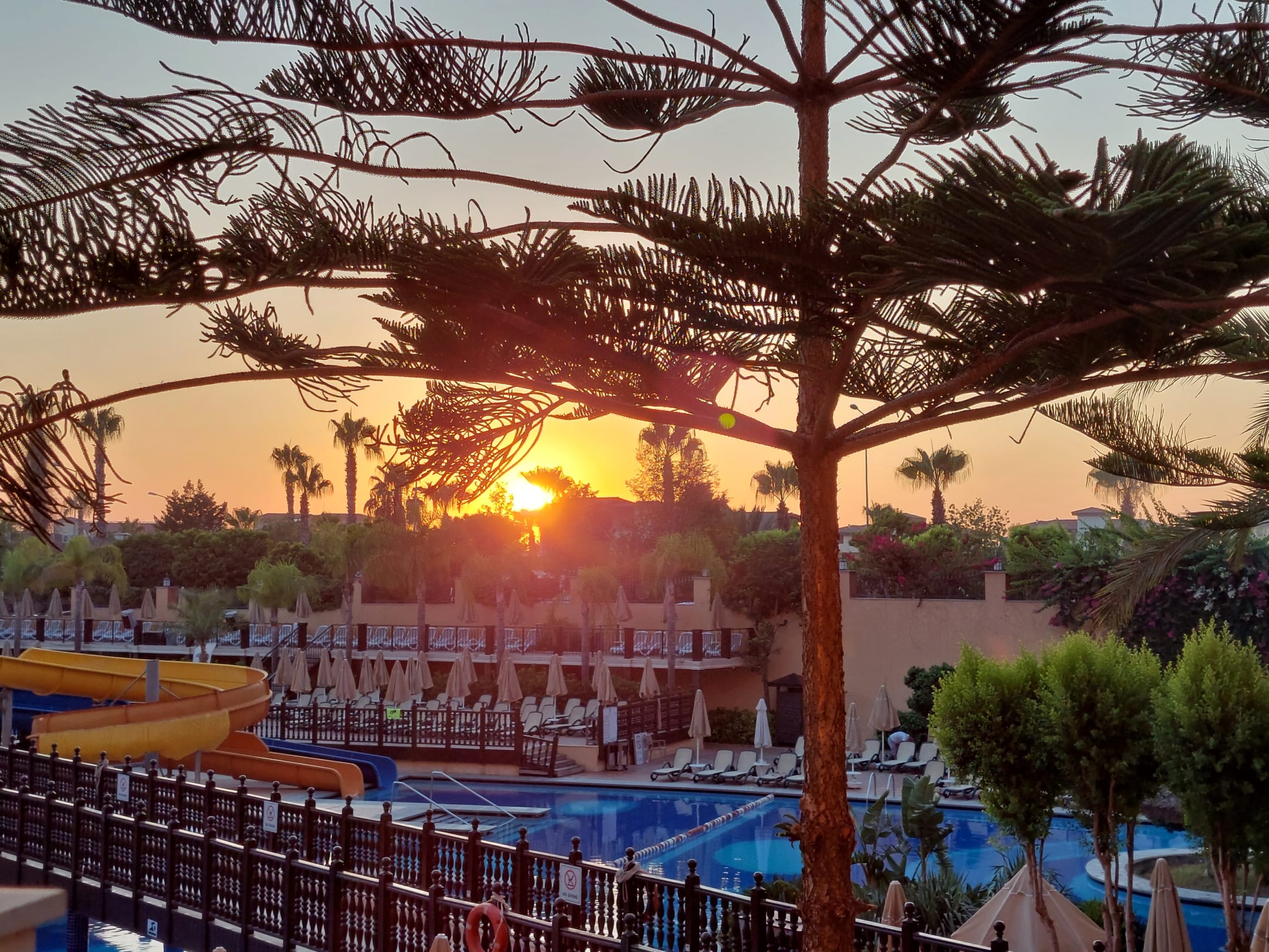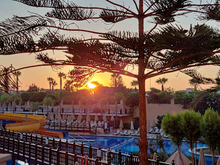 Sonnenuntergang nach dem Abendessen mit Blick auf den Pool.