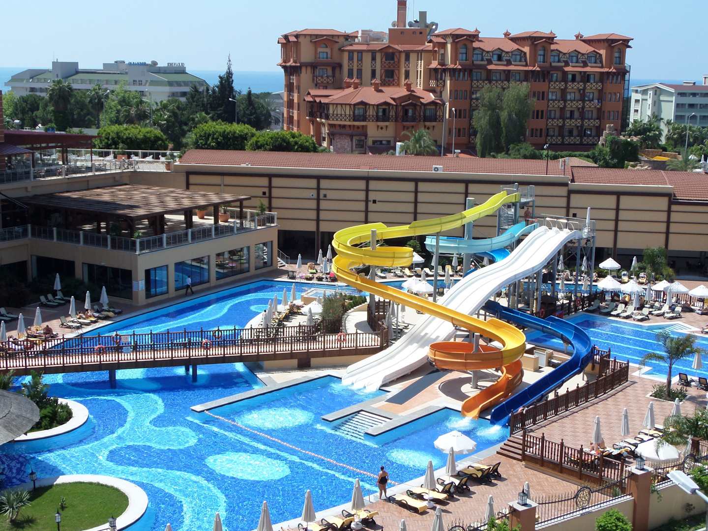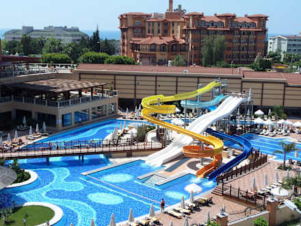 Zwembad met verschillende glijbanen