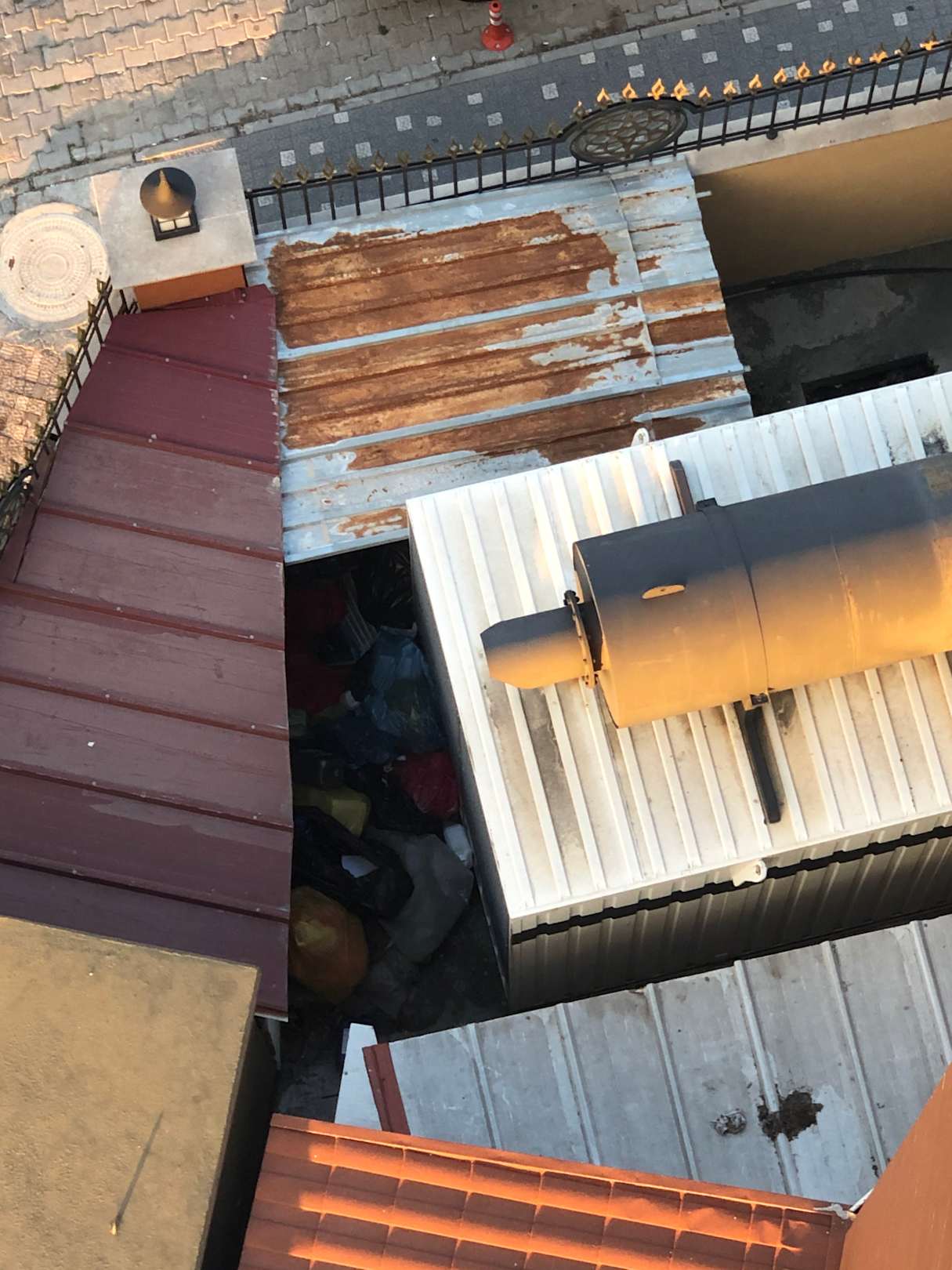 Müllecke des Hotels direkt unterm Balkon