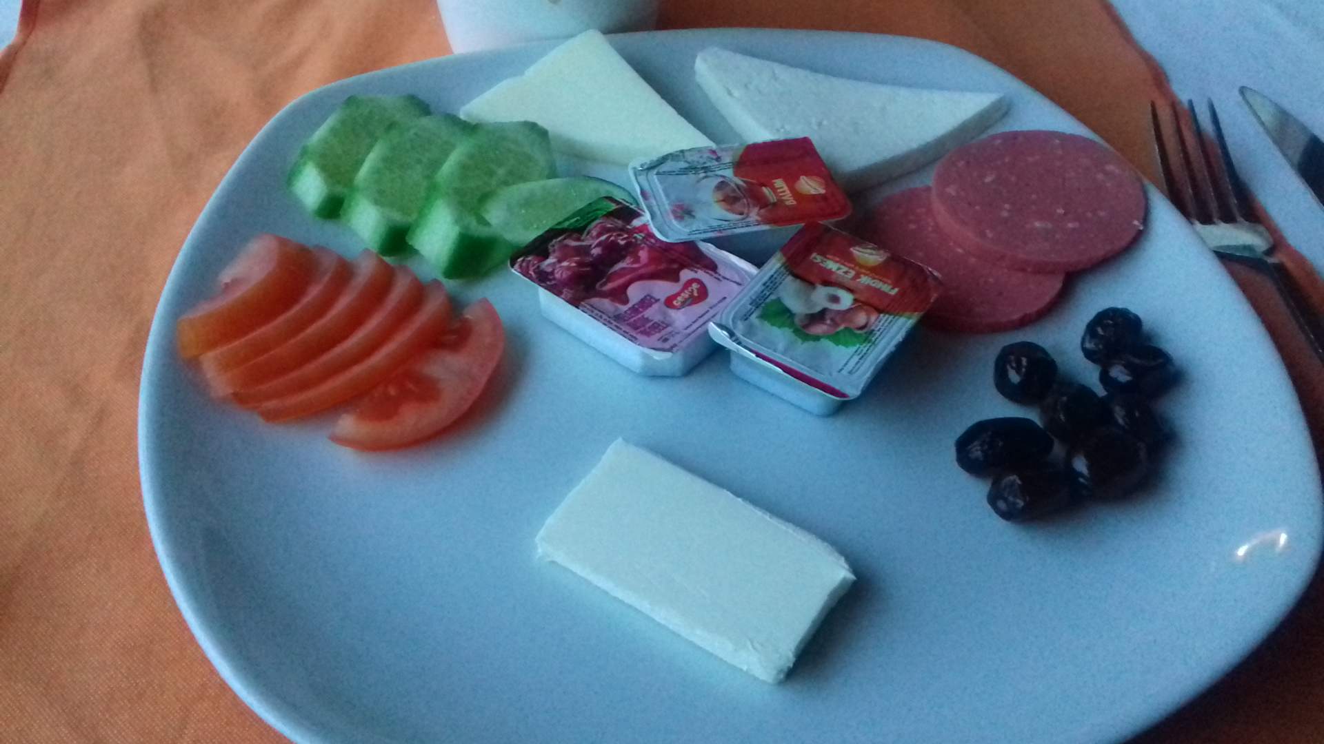 Hier noch einmal das REICHHALTIGE Frühstück, nachdem die Folie entfernt ist.
