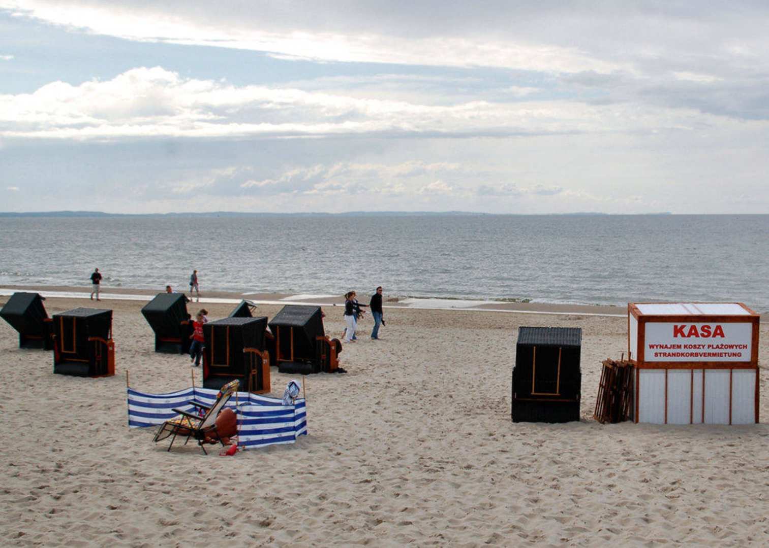 Am StrandLeider kein Badewetter - dafür aber ein wunderschöner leerer Strand mit preiswerten Strandkörben.