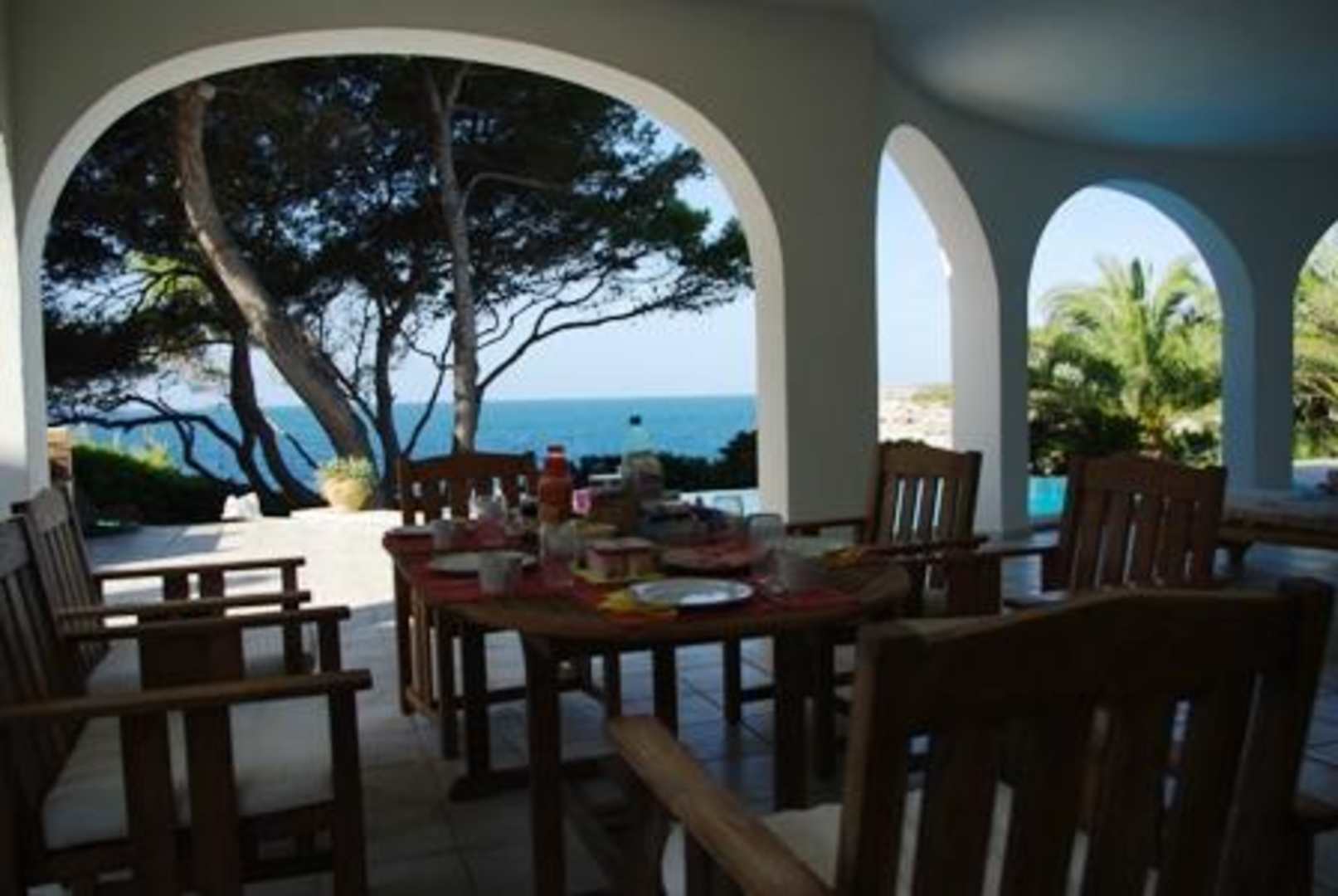 Die überdachte Frühstücksterrasse
