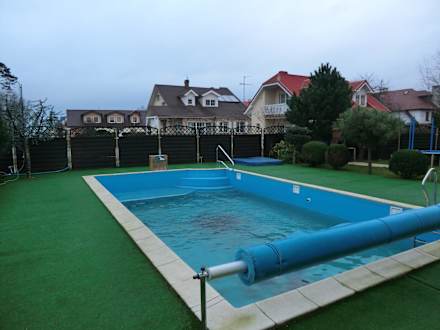 Hotelpool im Winter, deswegen verschmutzt