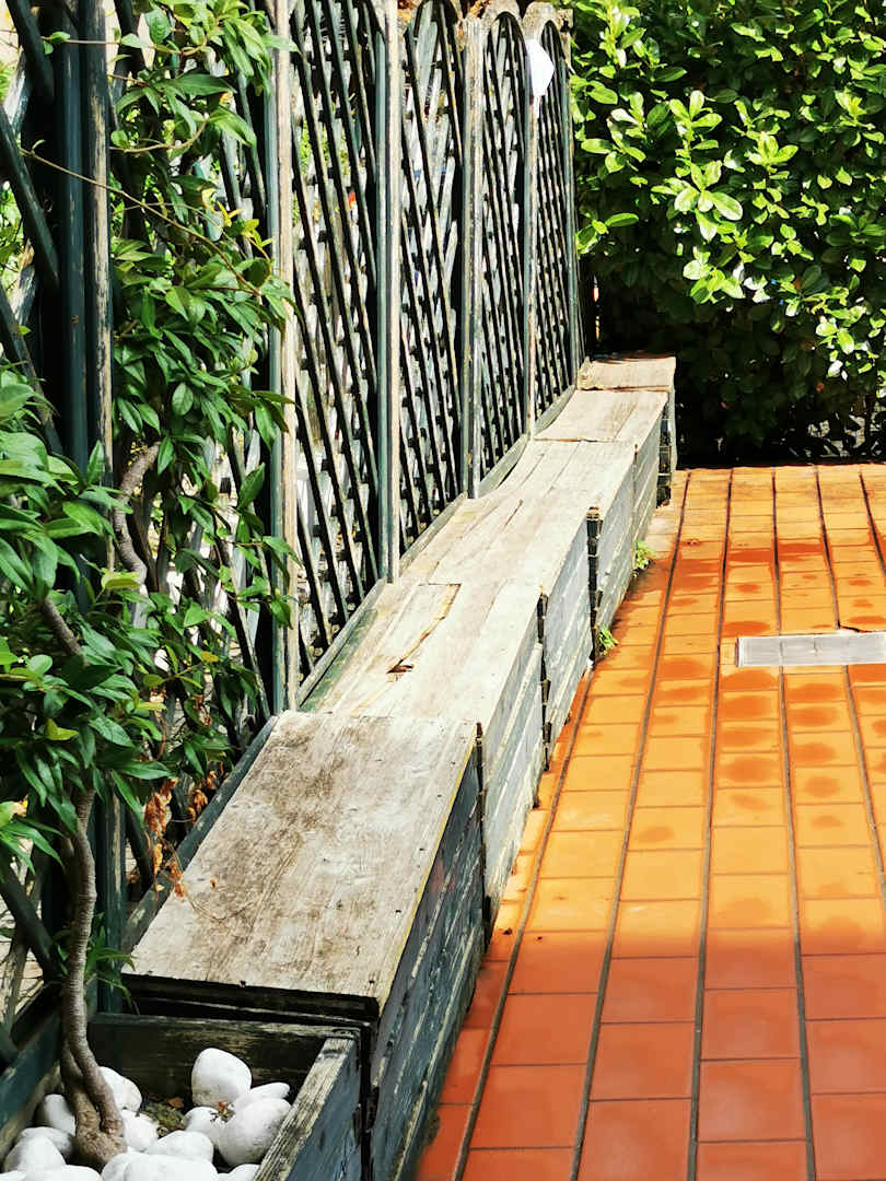 Die Sitzbänke am Pool, Liegen keine Vorhanden.
