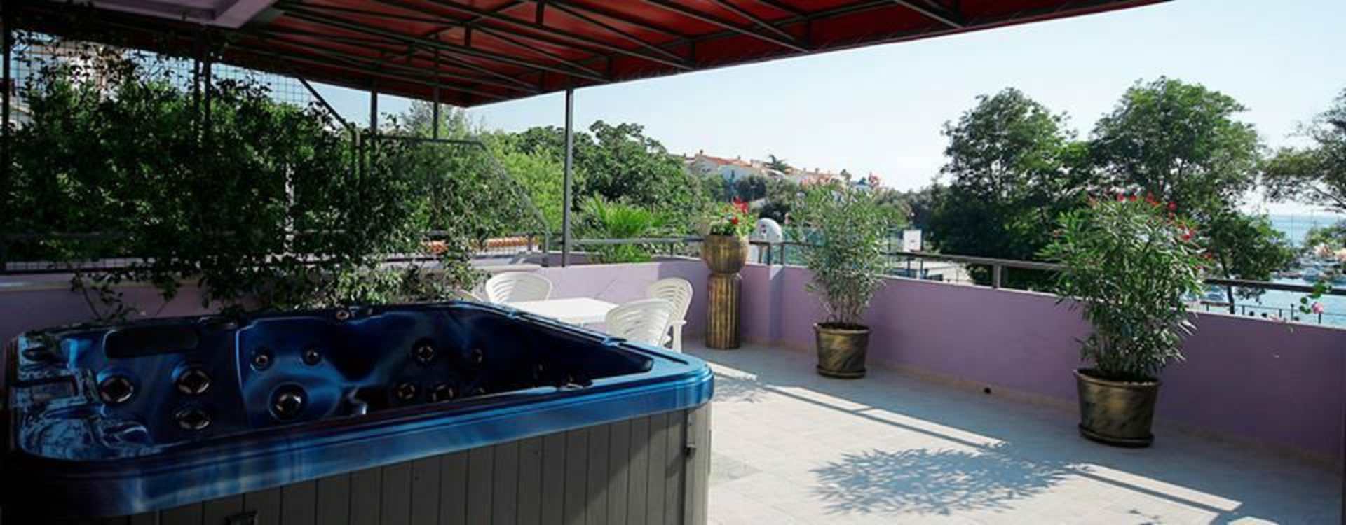Jacuzzi on a big sun-bathed terrace.