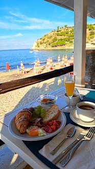 Blick vom Frühstückstisch aufs Meer