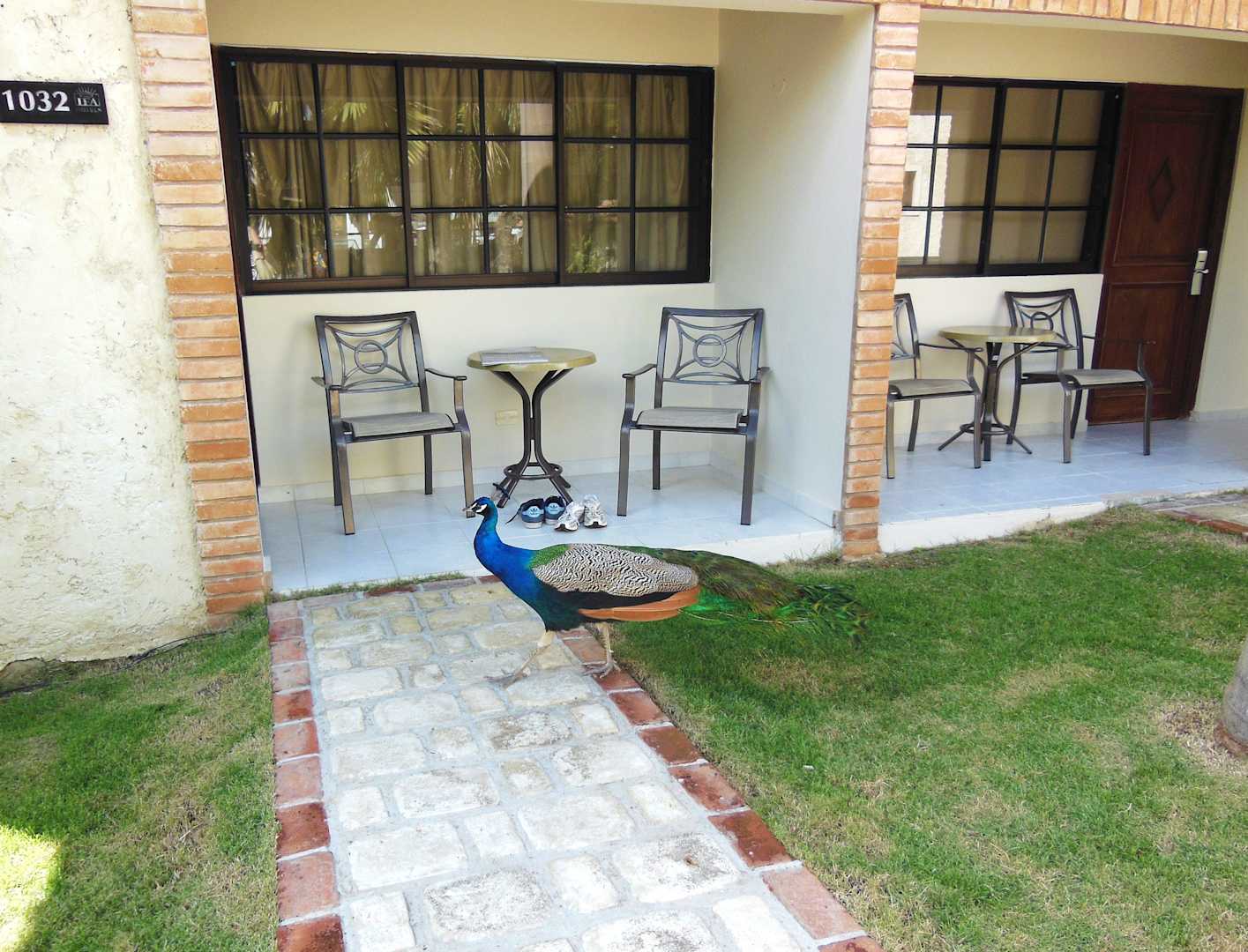 По территории отеля гуляют павлины