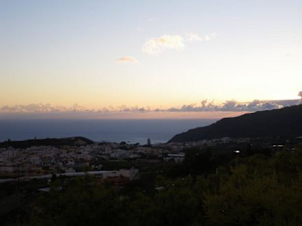 Blick von der Terrasse auf Los Llanos und das Meer