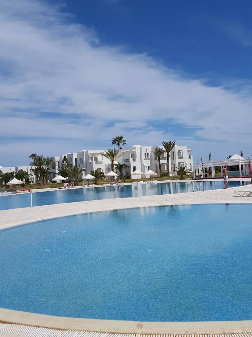 Blick auf Poolanlage