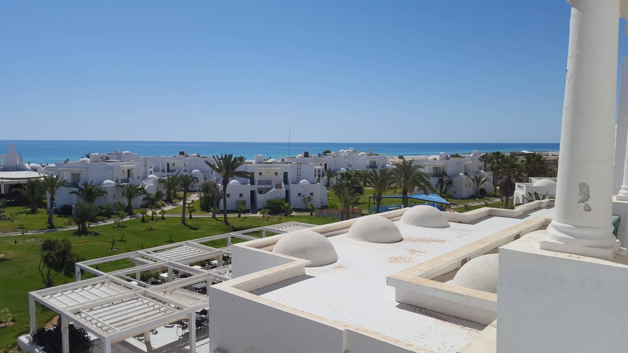 Blick vom Zimmer auf den Pool