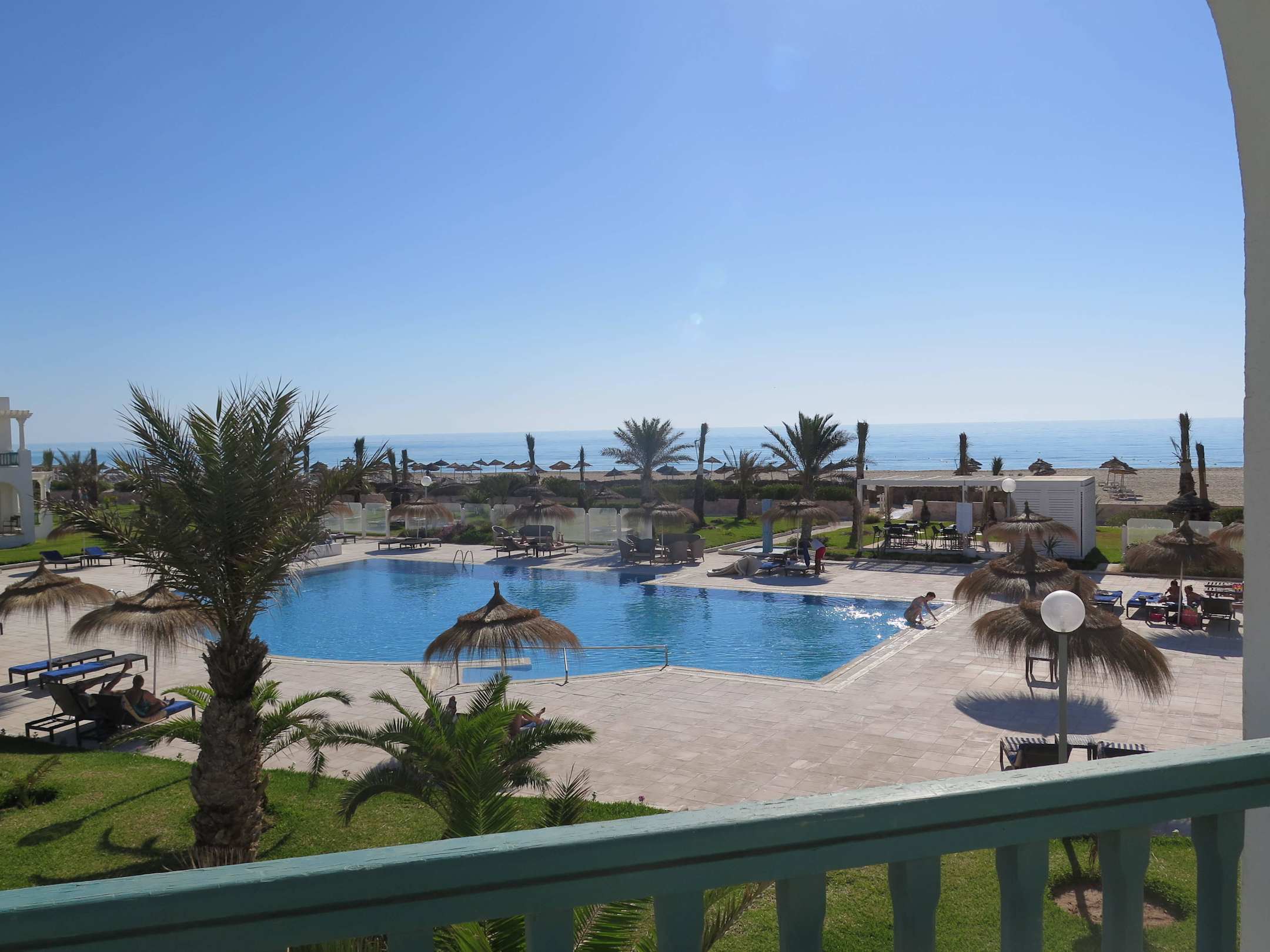Aussicht auf den Relaxpool und das Meer